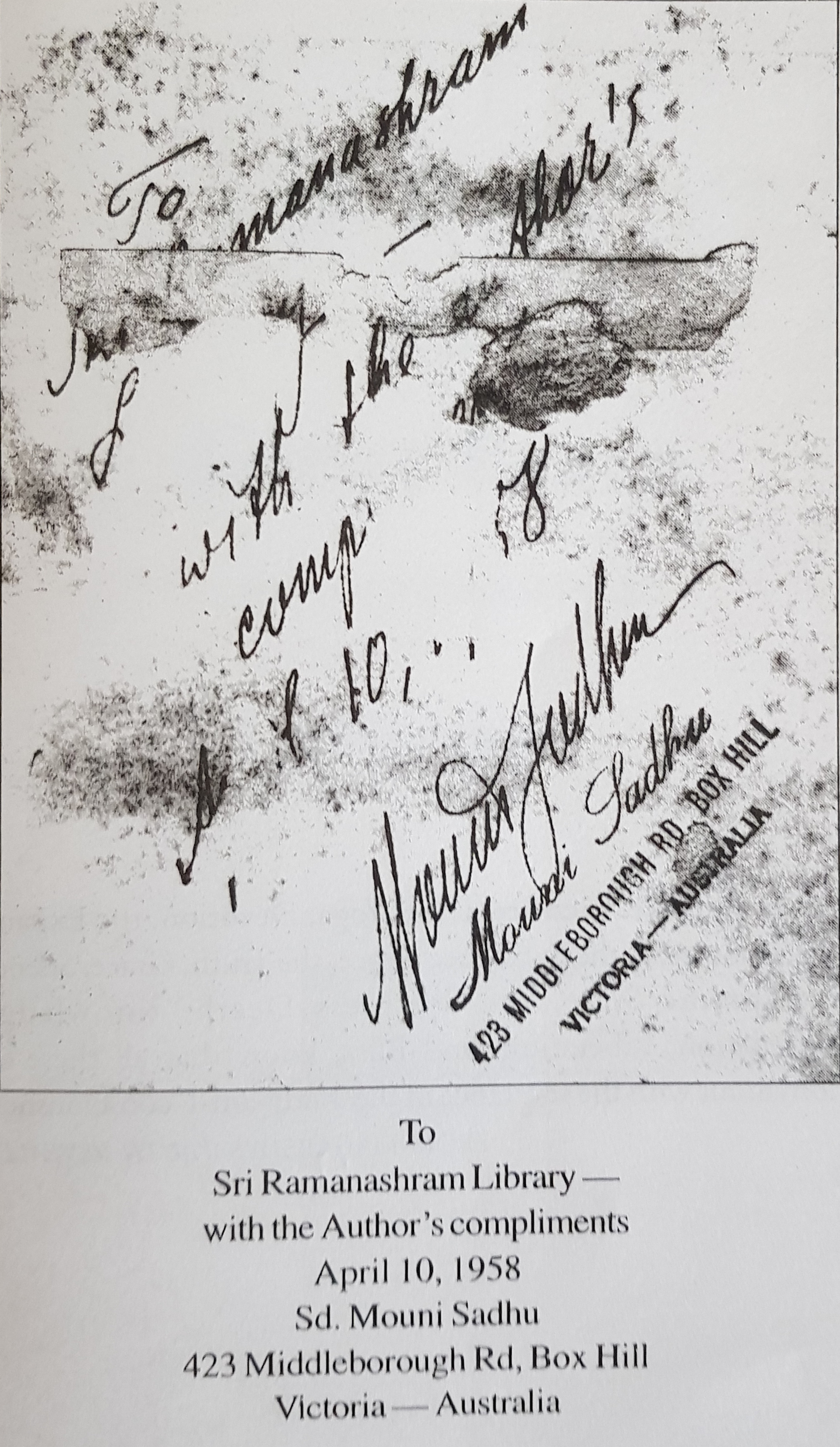 dedication to Sri Ramanasramam library