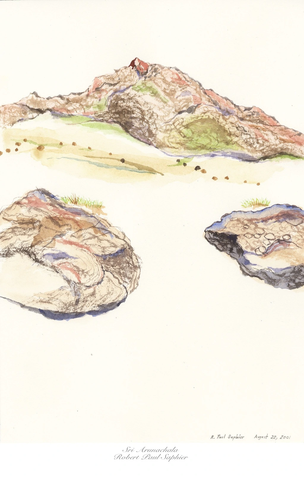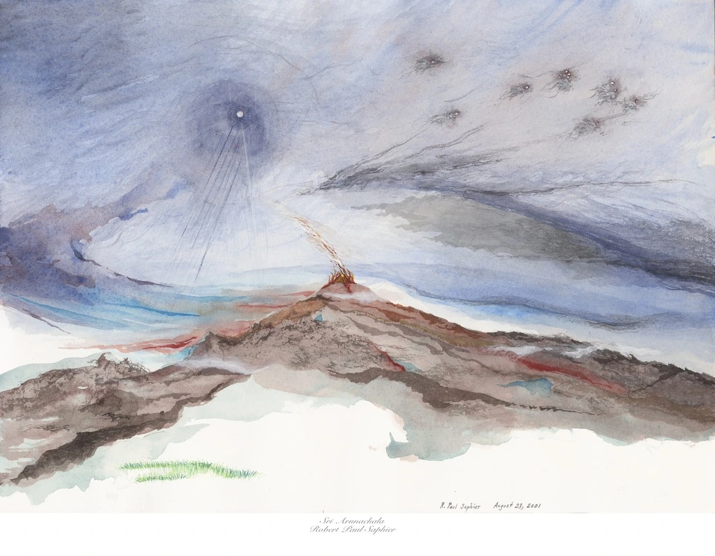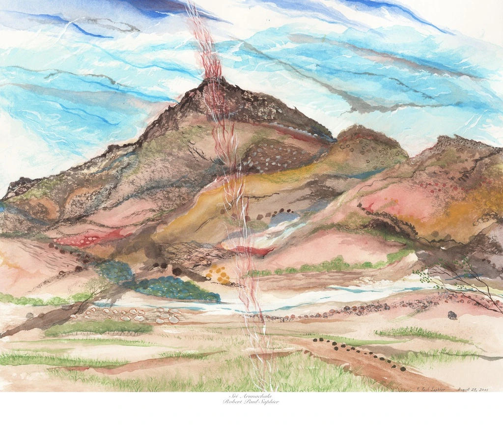 Sun-soaked skies on a sun-scorched hill Radiant rays rise on a journey fulfilled Our body, heart and mind, finally still Bathed in its light, Arunachala Embodiment of the lord of destruction Center of wisdom and self-reflection Giver of peace and divine protection Curer of our plight, Arunachala
