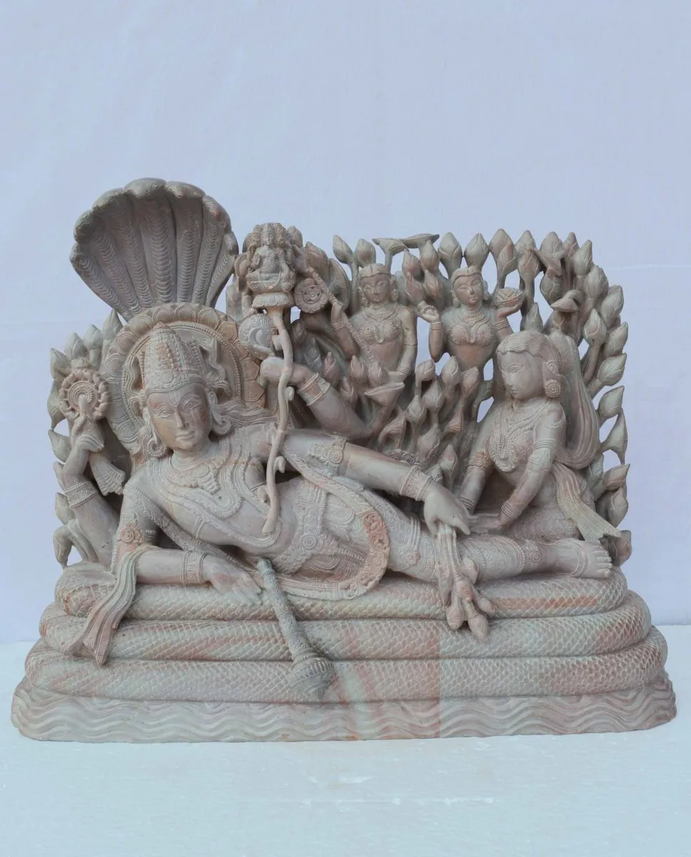 Gradually the alleyway straightened out and we could stand again. And then... that unbelievable and unforgettable moment... the impossible thing had happened. We were ushered into a room by this person. I looked around and could not believe my eyes. I was speechless with amazement. We were standing in front of that huge reclining figure or murti of Vishnu, commonly called ananta-shayana.